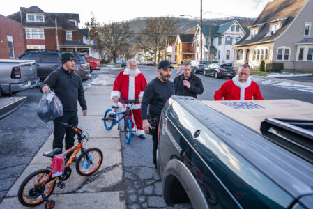 “We have a wrapping night, where the officers, borough officials, wives of the officers wrap the presents,” Stropp said. On Christmas Eve morning, the gifts are loaded up into the rear and seats of the waiting police vehicles. Summers said he would put on his lights and lead the parade of vehicles on the distribution circuit, which usually requires about two hours with an hour loading up and making sure each gift is tagged from Santa and goes to the right place. Stropp said the Christmas Program could not take place without the generosity and the Christmas Spirit of community members, and that begins months in advance.