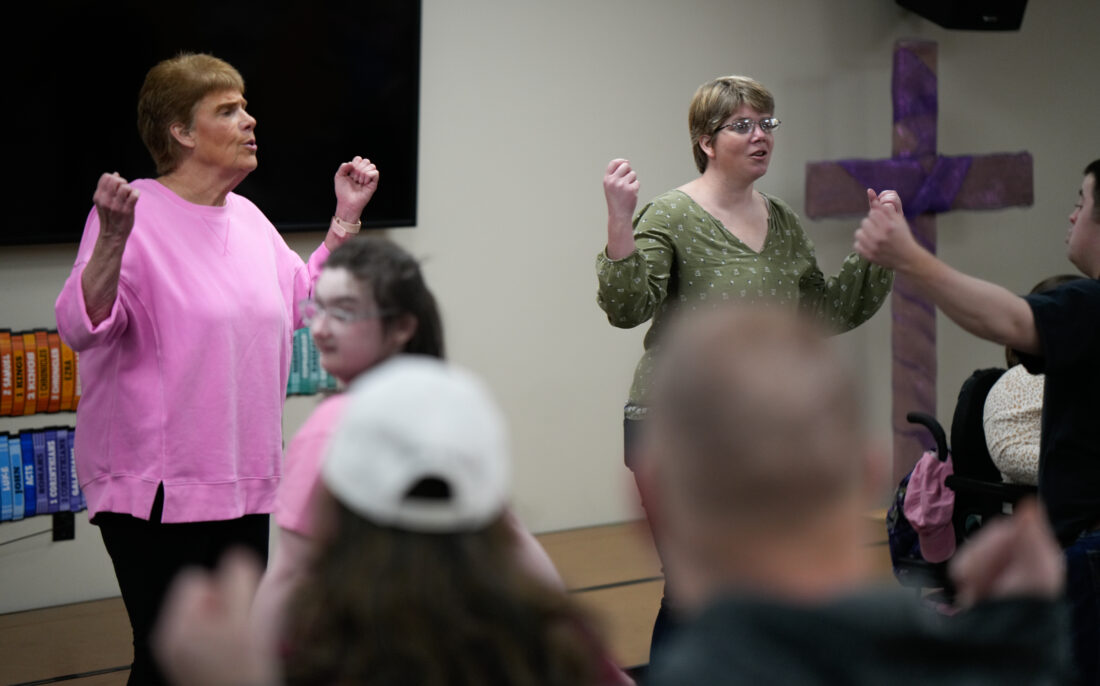 Diana Logan and her daughter Amber of Williamsport lead the group during the weekly practice of the Music from the Heart group. The group of special needs adults are praticing their songs for an upcoming concert April 18. DAVE KENNEDY/Sun-Gazette