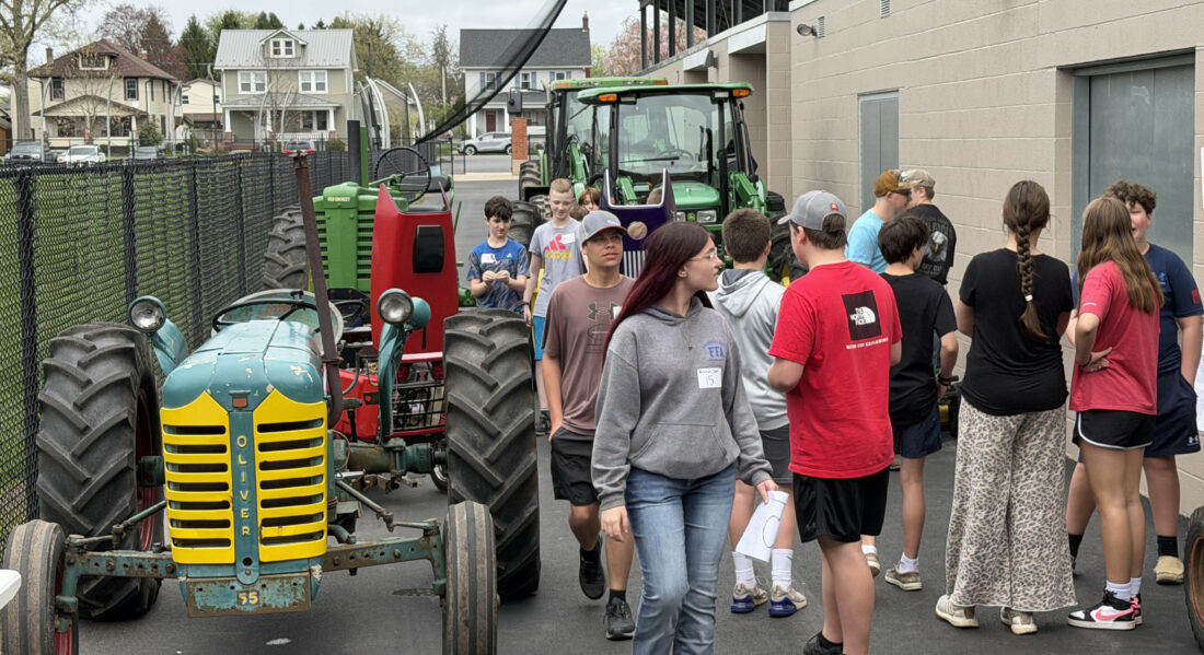 Students look over a variety of tractors during the Ag Day events at Montoursville High School. Students got to be exposed to a number of different career ideas as well as explanations of what they could learn if they take agricultural classes in high school. DAVE KENNEDY/Sun-Gazette