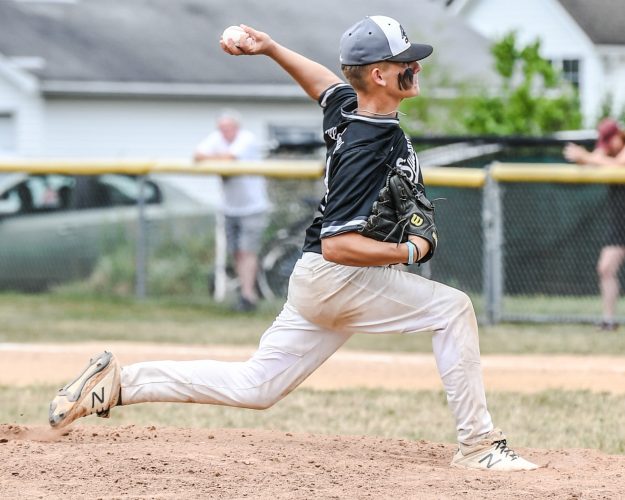 Devin Swank delivers a pitch in the Independent Summer League championship Saturday.