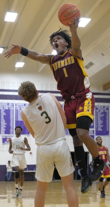 DAVE KENNEDY/Sun-Gazette St. John Neumann’s Davion Hill goes up for a shot against Pottsville Nativity on Friday in the PIAA Class A semifinals.