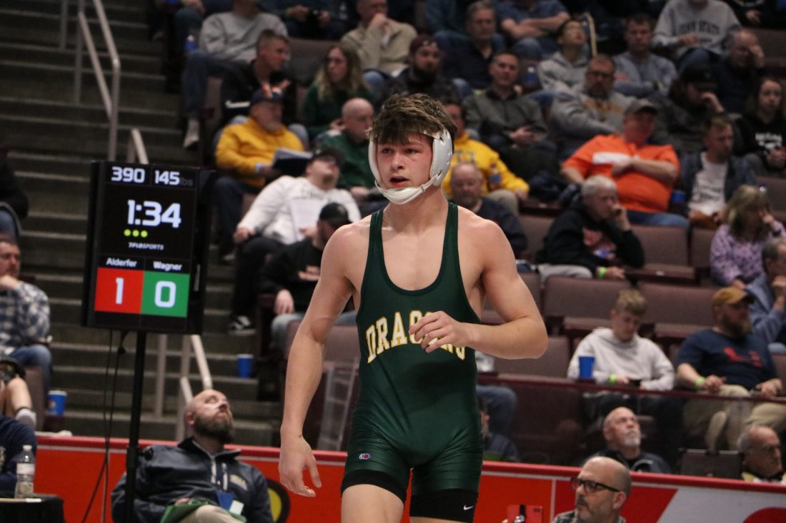Having placed fifth in states last year, the sophomore already improved his finish after his quarterfinal win.