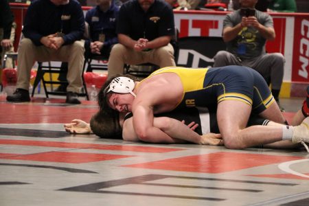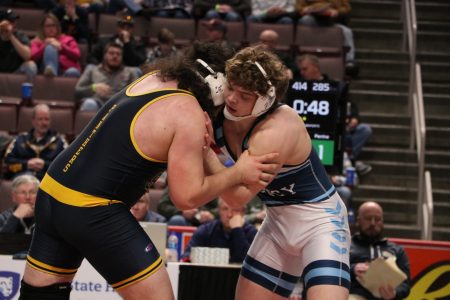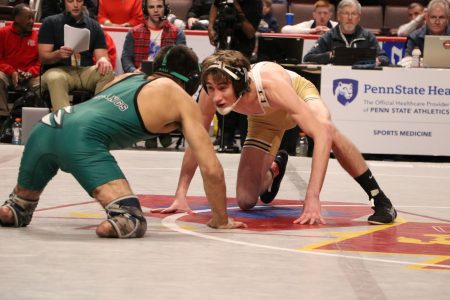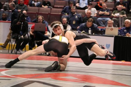 Through the state tournament, the two have been knocking heads. Harer continued to pound the drum, having advanced to the championship bout with an 11-4 decision over Notre Dame’s Evan Maag.
