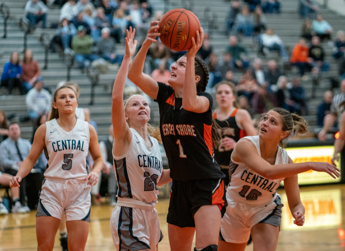 Jersey Shore never stopped competing hard, diving after loose balls and playing ferocious defense. Central pushed the lead to 25 in the fourth quarter, but the Bulldogs fought back and Schall’s 3-pointer cut it to 49-30.