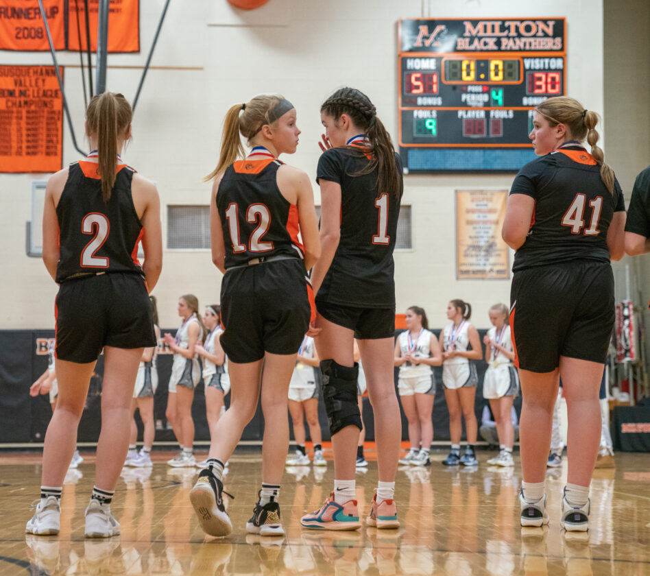 MILTON–As most Jersey Shore left the court Friday, sophomore guard Peyton Dincher lingered and stared a few extra seconds at Central Columbia hoisting the District 4 Class AAAA championship trophy.
