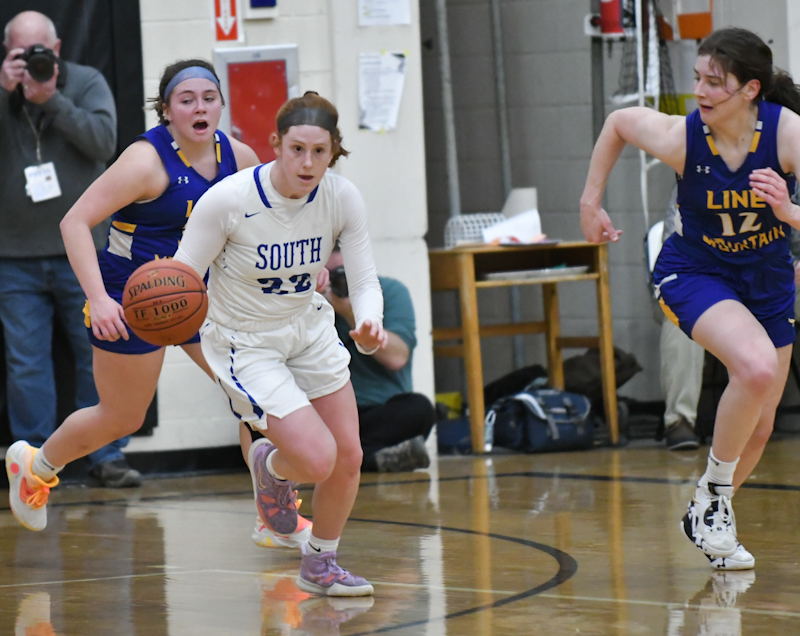 Line Mountain played an extended zone defense and tried its best to keep tabs on Lacey Kriebel, but South’s constant player and ball motion prevented that from happening. Kriebel looked like a prime Reggie Miller moving without the basketball and her teammates kept finding her open.