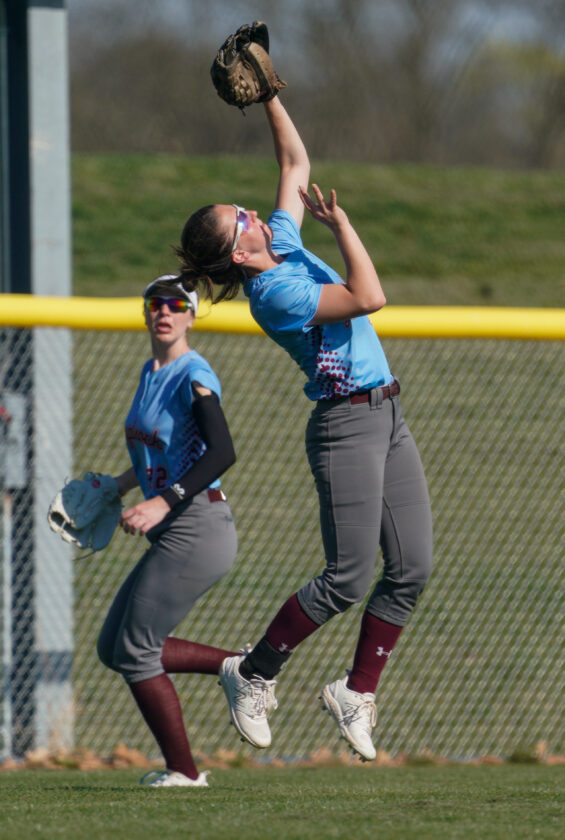 Katie Ryder of Loyalsock pulls in a fly ball for an out on a hit by Liana Dion of Warrior Run in the second inning at Warrior Run High School April 13, 2023. Loyalsock won 14-1. DAVE KENNEDY/Sun-Gazette