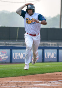 Colson Lawrence scores in the second inning against the Trenton Thunder at Muncy Bank Ballpark June 30, 2023. DAVE KENNEDY/Sun-Gazette