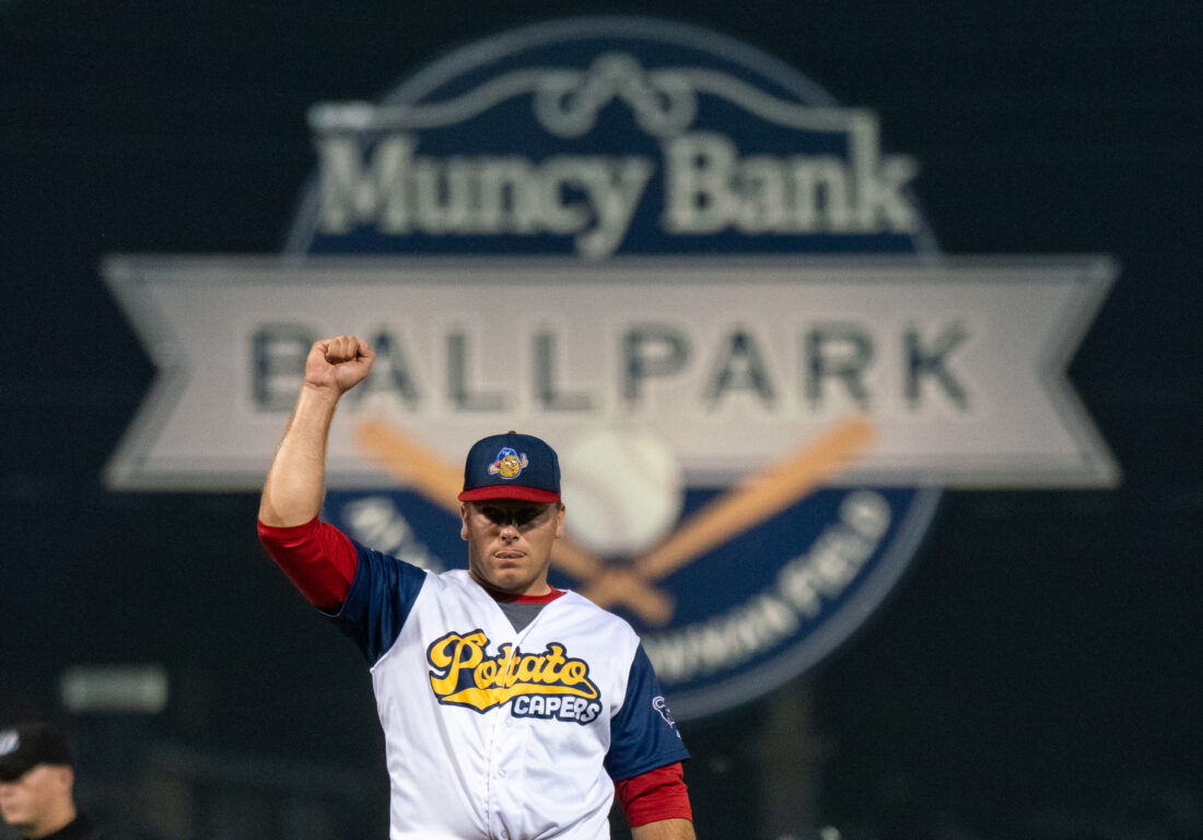 Nate Wohlgemuth of the Crosscutters pumps his fist after the Cutters won 8-4 over Trenton Thunder at Muncy Bank Ballpark June 30, 2023. DAVE KENNEDY/Sun-Gazette