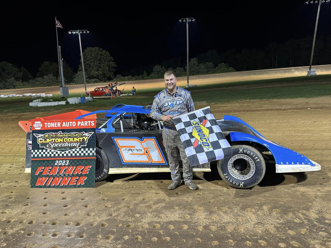 PHOTO PROVIDED Jakob Piper poses after picking up a victory at Clinton County Speedway.