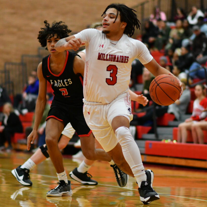 Mahki Johnson played an outstanding game and made a run at a double-double while directing the offense. The senior point guard scored nine points, dealt eight assists and added two steals. He had six assists by halftime as the Millionaires clawed within 32-27.