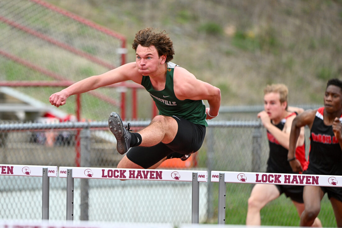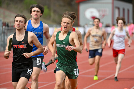 The 800 saw all top four finishers set either PRs or season bests as Peter Fisher, a sophomore from Williamsport, set a PR to win with a time of 2:03.65, edging Troy’s Evan Geer (2:06.21). Wyatt Gavitt was fourth with a season-best mark of 2:07.34 behind Tyrone’s Aiden Detwiler (2:06.46).