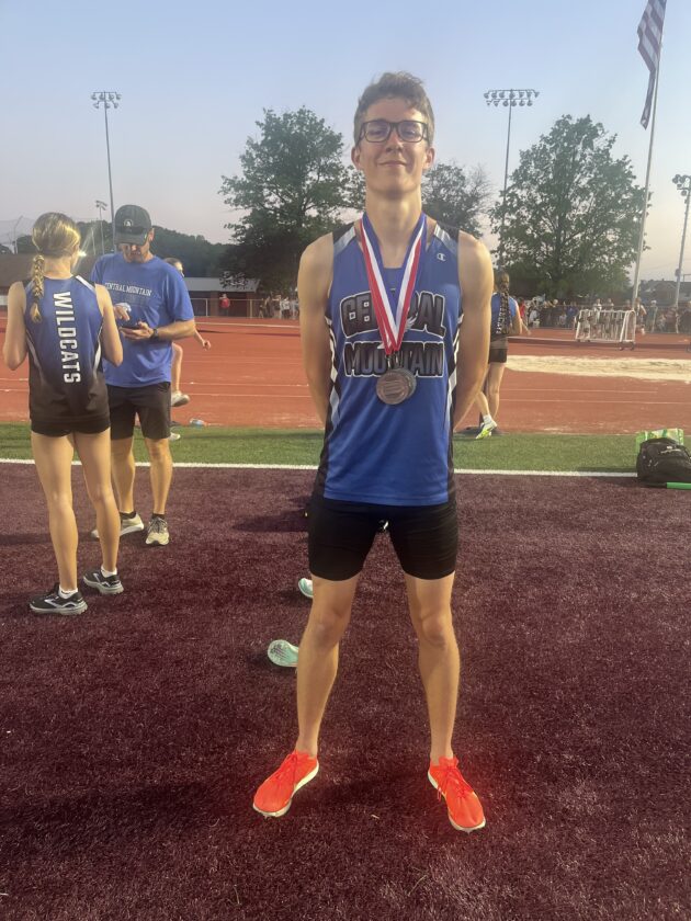 Senior Cooper Bottorf and junior Billy Newman made it three silver medals for the team alongside Wible’s in the 400, with Bottorf hitting the second best throw of his career in discus on a 150-4 and Newman headlining a strong overall event for Central Mountain in jumps, taking second in the high jump (5-9). There was disappointment that came with falling just short of states, with Bottorf notably missing out by under three feet, but there was also plenty of pride.