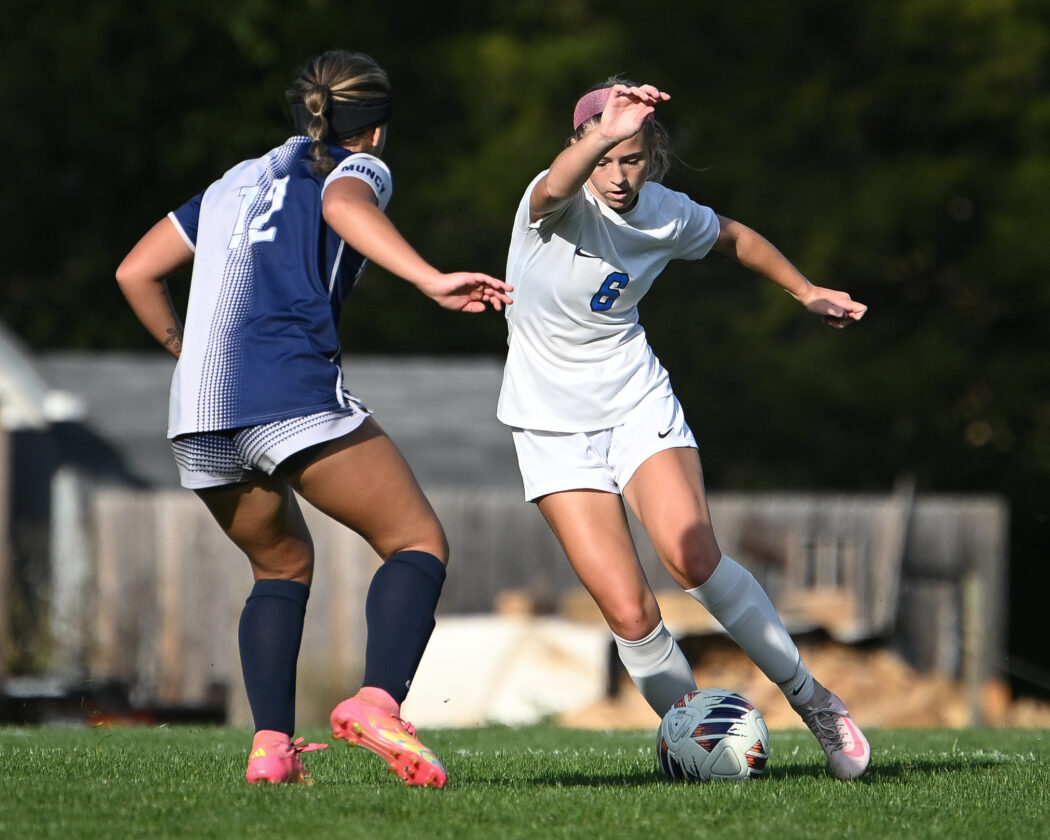 In the first overtime period, South’s Kloey Persun chased down a ball and had a good look only to see Nagel slide and catch the ball before she was able to shoot. Three minutes later, Muncy’s Ella Nagel fired a direct kick 40 yards out and sent it into the 18.