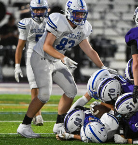 TIM WEIGHT/Special to the Sun-Gazette Central Mountain’s Logan Hanna (83) competes during a football game against Mifflin County on Friday, Aug. 22, 2025, at Marcel Paper Field.