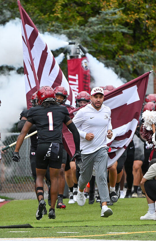 TIM WEIGHT/Special to the Sun-Gazette Lock Haven players and coaches run onto the field prior to a game earlier this season against Glenville State at Lock Haven.