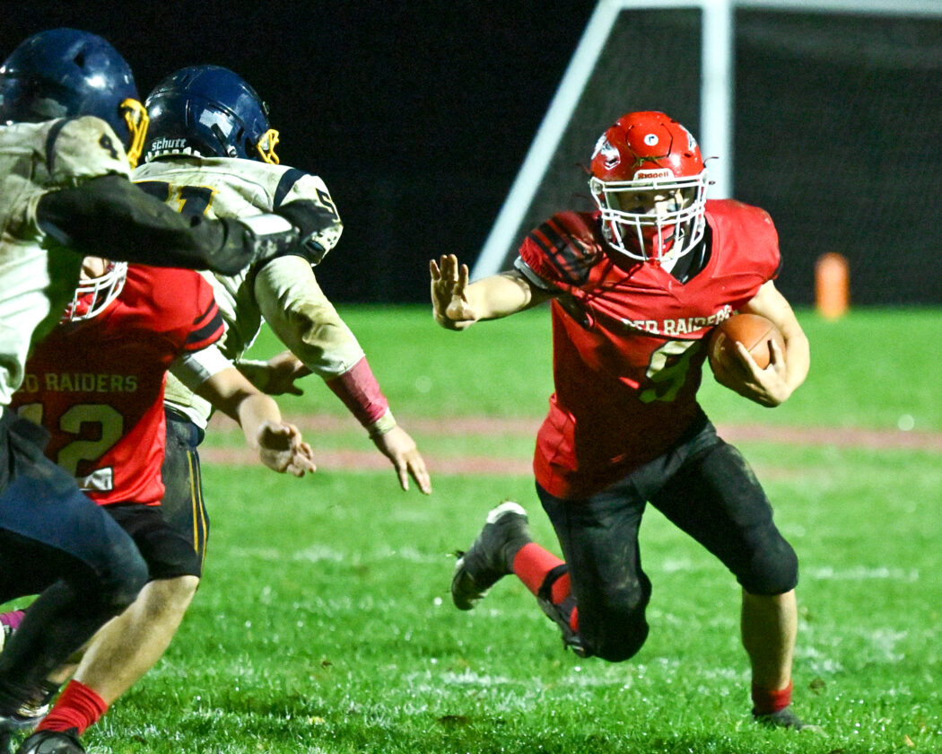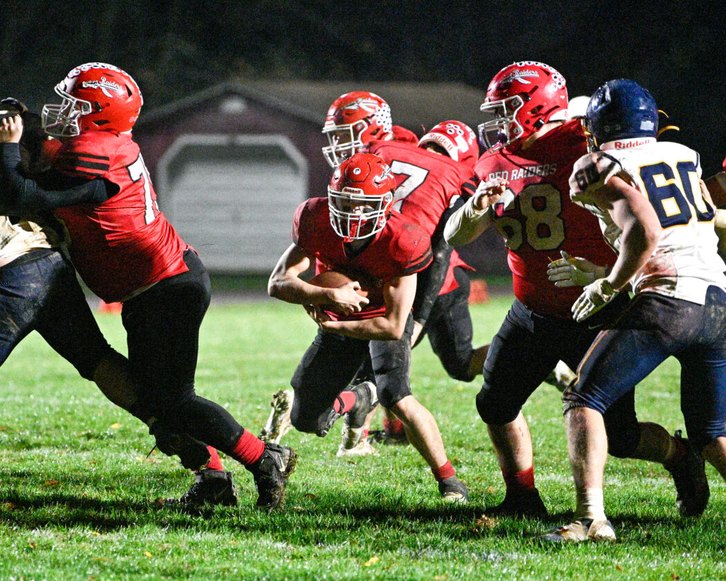 The Red Raiders forced three interceptions defensively by Cowanesque Valley quarterback Dave Hess as Logan Joy picked off two passes and Seth McClintock had one.