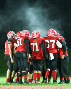Montgomery responded to coach Knoebel and the staff’s halftime talk and opened the third quarter with an eight-play, 47-yard drive which ate up roughly four minutes as Josh Knoebel punched in a 3-yard touchdown to give the Red Raiders a 21-6 lead. Knoebel ended the day with two touchdowns as he also had a 31-yard run with 10:40 to play in the second quarter for a 14-0 lead.