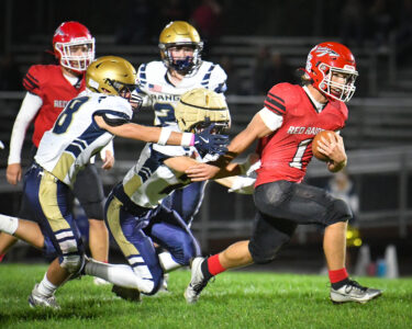Knoebel’s two first-quarter touchdowns, the second of which came on a 47-yard run, precluded the third touchdown of the quarter by the Red Raiders. That score belonged to Austin Luckenbill, who was thrust into a more prominent role in the offense after a Montgomery player was ejected. Luckenbill found daylight from 42 yards out with just seconds remaining in the quarter to put Montgomery up 20-0 at the end of the first frame.
