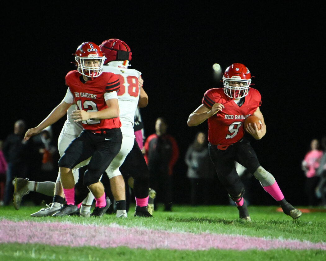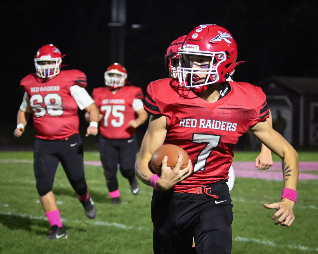 Montgomery scored four touchdowns in the second quarter on four consecutive drives to take a 40-6 lead into the half. That offensive surge in the fourth was led by Montgomery’s ground game. Josh Knoebel had a 10-yard touchdown run, Briar Persing had a 7-yard run and then the Red Raiders broke two long touchdown scores.