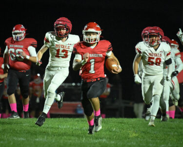 “They didn’t take away any one dimension of our game. We had a balanced attack. We threw for close to 100 yards, had two guys rush for over 100 again tonight,” Knoebel said. “Just a balanced attack again. We ran a lot of new formations tonight and we keep building and evolving and moving forward.”