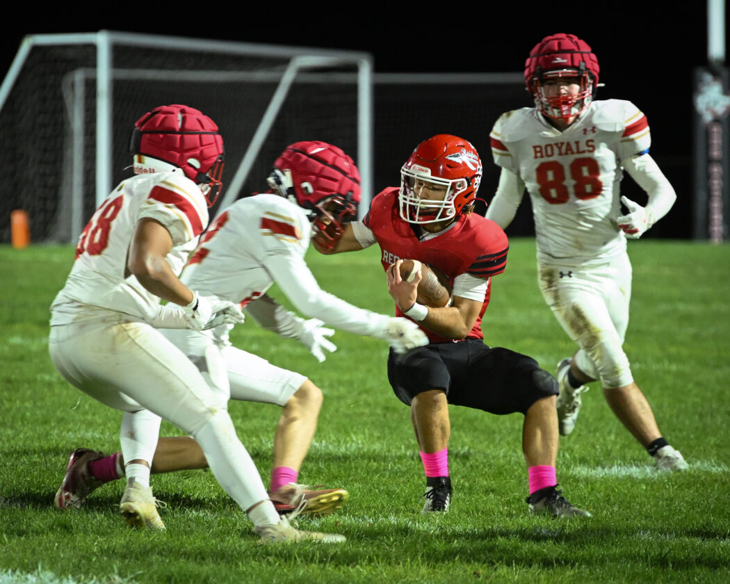 The Red Raiders stifled the Royals’ offense. Holy Redeemer ended Friday night’s game with just 61 yards of total offense. The Royals threw for 84 yards, but the run game was non-existent as Montgomery forced minus-23 yards on the ground.