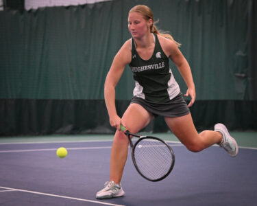 - RALPH WILSON/Sun-Gazette Correspondent Georgia Randall competes for Hughesville during the semifinal round of District 4 girls tennis singles at Central PA Tennis Center in South Williamsport on Monday.