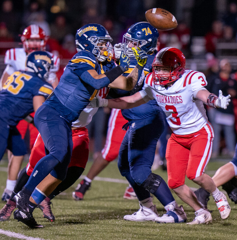Mount Carmel (5-6) rallied from a 14-0 deficit to lead by seven points on two separate occasions. In the first overtime, Jaylen Delaney, who did his absolute best to match Banks play-for-play, scored on a 3-yard run to give the Red Tornadoes a 28-21 lead in the first overtime. Just like last week in a near-upset of Shamokin, Mount Carmel was one play away from winning. Facing 4th-and-goal, Montoursville quarterback Elijah Eck found a wide-open Kingston Fisher on a 8-yard touchdown pass that extended the game into the second extra session. It was the second crushing loss for the Red Tornadoes in as many weeks, but one that further validated their second-half turnaround following a 1-4 start to the season.