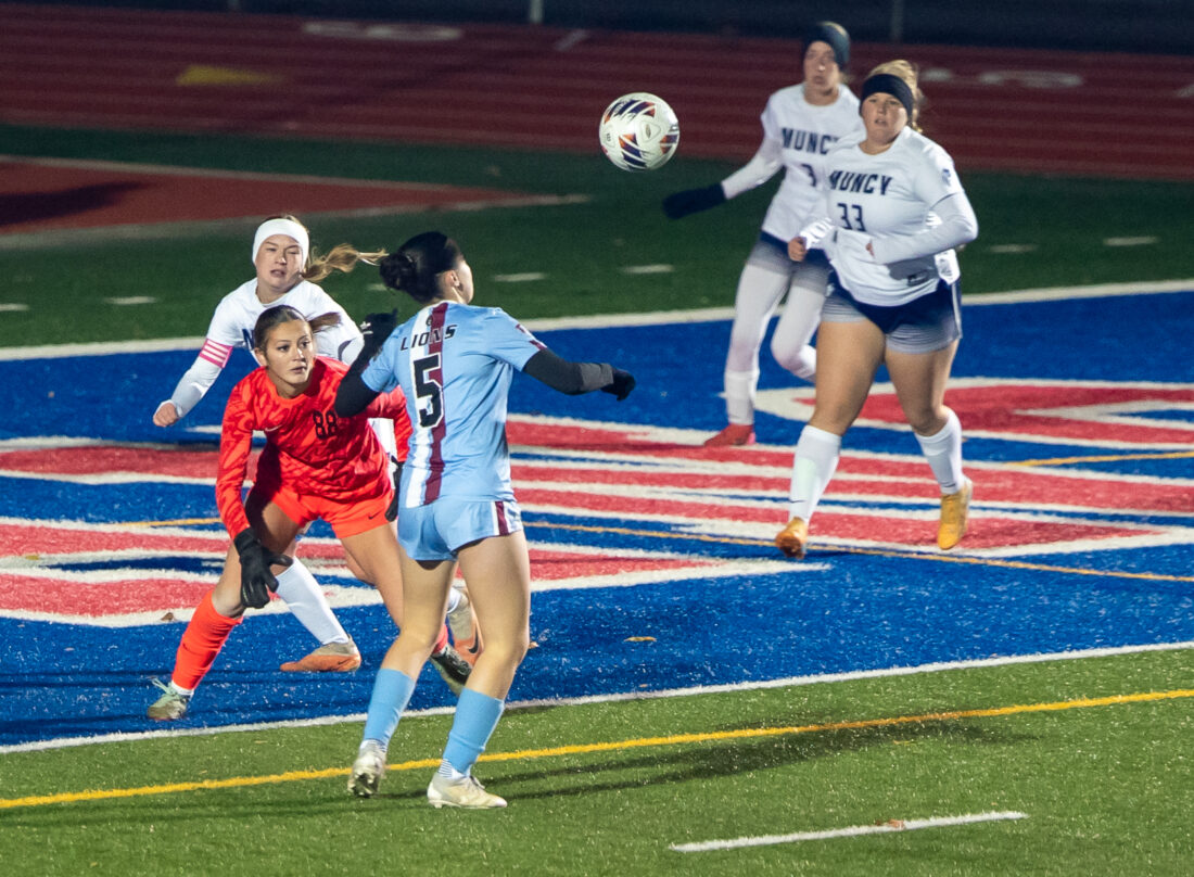 Faith Christian’s crisp passing in the cold and possession overall allowed the Lions to keep Muncy from using its weapons in Ava Eyer and Kiki Woodward up top with through balls. That duo only got a handful of opportunities throughout the game, but weren’t able to get a shot on goal.