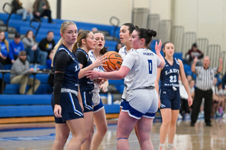 - TIM WEIGHT/Special to the Sun-Gazette Central Mountain players defend during Saturday’s game against Brookville in the Mike Flanagan Memorial Tournament championship.