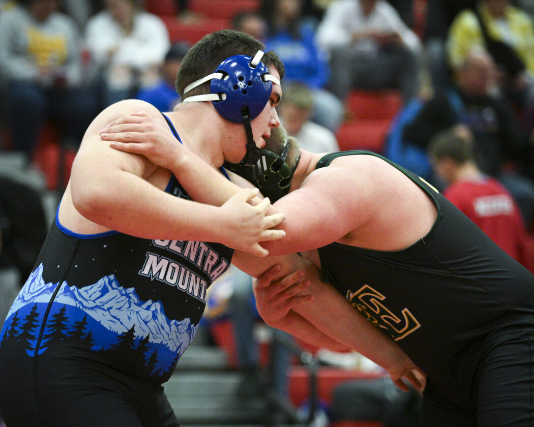 WILLIAMSPORT – In the waning moments of Saturday’s 285-pound championship final, the grasp that Central Mountain sophomore Hayes Henry had on his first high school title appeared to loosen. Three minutes removed from taking a 1-0 lead and 30 seconds away from a gold-sealing ride out, his opponent, Emmaus senior Logan Roth, got up and out of Henry’s grip, tying the match and carrying momentum into overtime.
