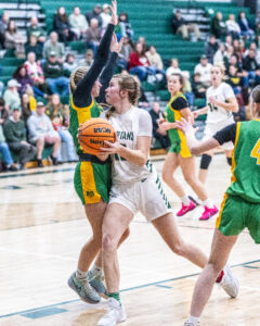 - GERI SCHNURE/Special to the Sun-Gazette Hughesville’s Maddie Smith drives to the basket during Tuesday’s game.