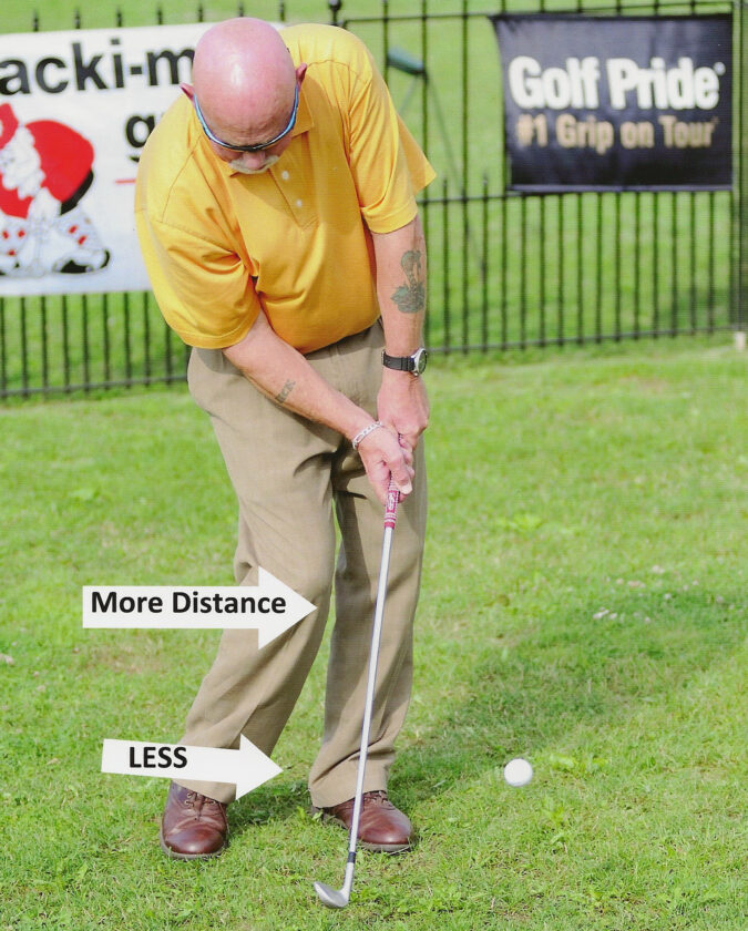 Adding the knee kick eliminates that dreadful thin shot that goes low, ending up in the over the green. It will take a few shots to get the hang of it. Don’t forget to utilize the shoulders to move the club, eliminating too much hand action and the knee for the desired ball speed.