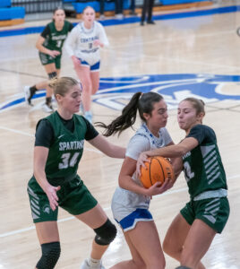Hughesville players continued sharing the ball and seeing the court well and set each other up for quality shots. The Spartans also effectively turned defense into offense with Temple and Morgan combining for nine first half steals.