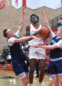 - MARK NANCE/Sun-Gazette Correspondent Williamsport’s Mekhi Gaston shoots over Dallas’ defense in the first quarter.