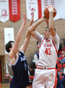 - MARK NANCE/Sun-Gazette Correspondent Williamsport’s Kason Ulmer (43) shoots over Dallas’ Chris Flanagan (4) in the second quarter.