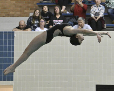 Clover Lindsay started Tuesday’s diving competition between her and Allie Eberhart and scored three 6s with her first dive attempt. By her final dive of the day, she posted a 5 1/2, 6 and 6 1/2. In other words, Lindsay started the meet solid and ended strong to walk away with a win at home in diving competition on Tuesday.