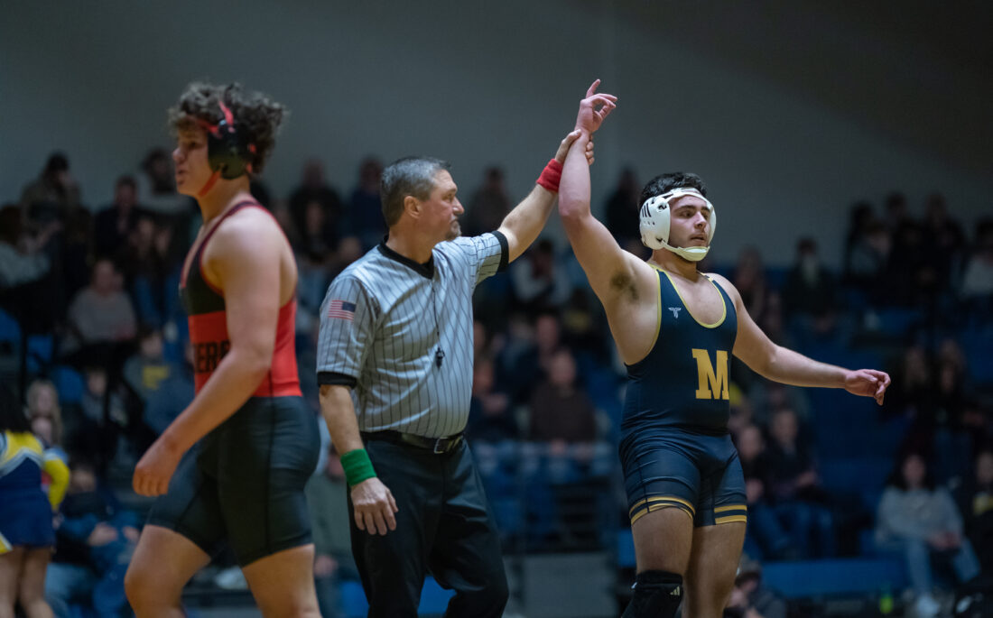 139 A.J. Kroft (Mg) dec. Kaden Kleinman, 11-5. 145: Brandt Harer (Mg) tech. fall Haze Mullen, 20-5, 0:53. 152: Trace Furman (Mg) tech. fall Hunter Gee, 18-3, 4:34. 160: Josh Knoebel (Mg) pinned Maxton Williamson, 1:22. 172: Gage Wentzel (Mv) tech. fall Raiden Felix, 17-1, 4:28. 189: Mason Murray (Mg) maj. dec. Gage Furman, 9-0. 215: Hayden Harvey (Mv) pinned Evan Hugar, 1:18. 285: Gabriel Vanderwall (Mv) maj. dec. Keigan Clark, 8-0. 107: Branden Eisenhour (Mv) tech. fall Manny Stoltzfus, 16-1, 4:27. 114: Gabe Oberheim (Mg) pinned Ethan Amato, 0:55. 121: Liam Seeley (Mg) tech. fall Coltyn Wagner, 20-5, 2:41. 127: Carden Wagner (Mg) dec. Brody Bower, 8-1. 133: Teli Bobotas (Mv) pinned Carter Finck, 0:39.