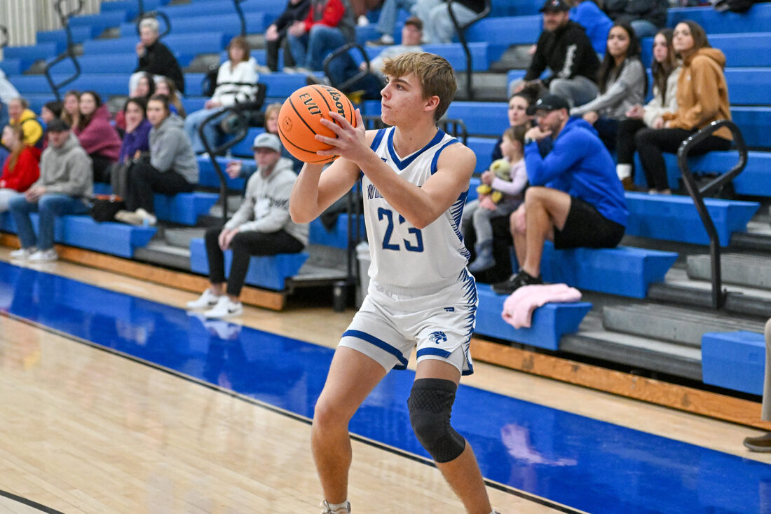 TIM WEIGHT/Special to the Sun-Gazette Central Mountain's Collin Confer (23) takes a three-point shot during a boys basketball game against Shamokin on Saturday, Jan. 3, 2026, at Central Mountain. The Wildcats fell 66-60.