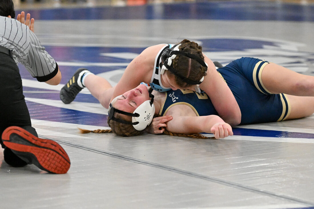 And in the match’s final competitive bout at 130, Aiyana Henninger kept up what’s been a strong freshman campaign. Out of a standing position in neutral, she’d take down Central Mountain’s Kennedy Metzger before Metzger dragged her out of bounds. Then, out of top, she’d stifle an escape attempt before flipping Metzger to her back for a first-period pin.