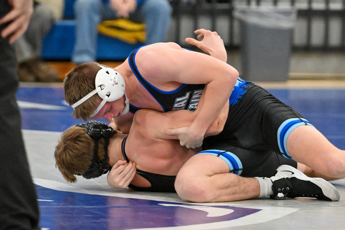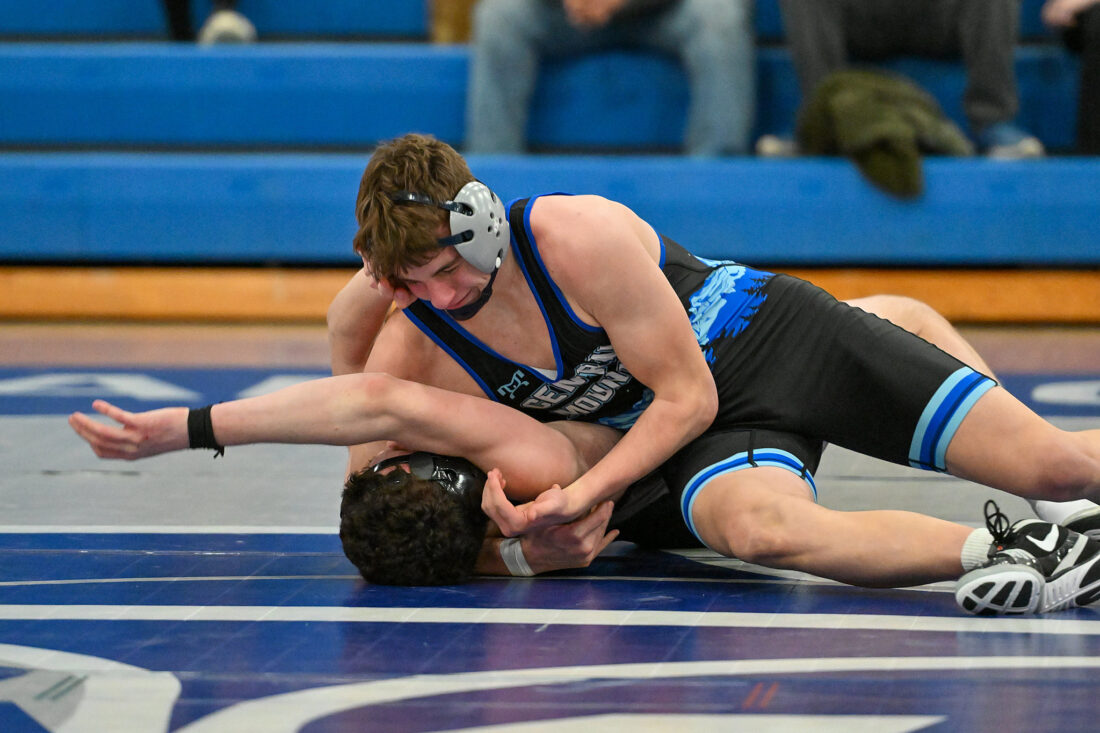 TIM WEIGHT/Special to the Sun-Gazette Central Mountain's Hayes Donley works a pin during a boys wrestling dual on Thursday, Jan. 22, 2026, at Central Mountain. The Wildcats won 64-6.
