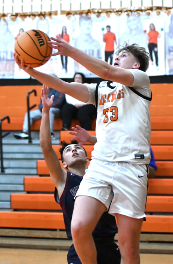 - MARK NANCE/Sun-Gazette Correspondent Jersey Shore’s Ty McDermit (33) shoots over Shikellamy’s Corbin Stahl (5) in the first quarter.