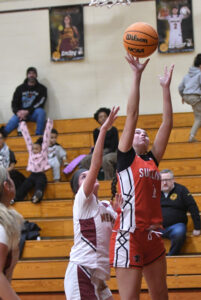 - MARK NANCE/Sun-Gazette Correspondent Sullivan County’s Eva Fresno (1) shoots over St. John Neumann’s Savana Smith (13) in the second quarter.