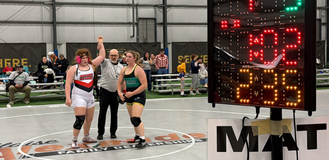 The Red Raider freshman pinned Northern Lehigh’s Sophia Opazo in 1:17 in the championship semifinals before then dominating Danville’s Juliet Steckley in tinal, 16-0, 2:39 to take the title.