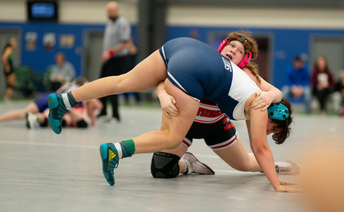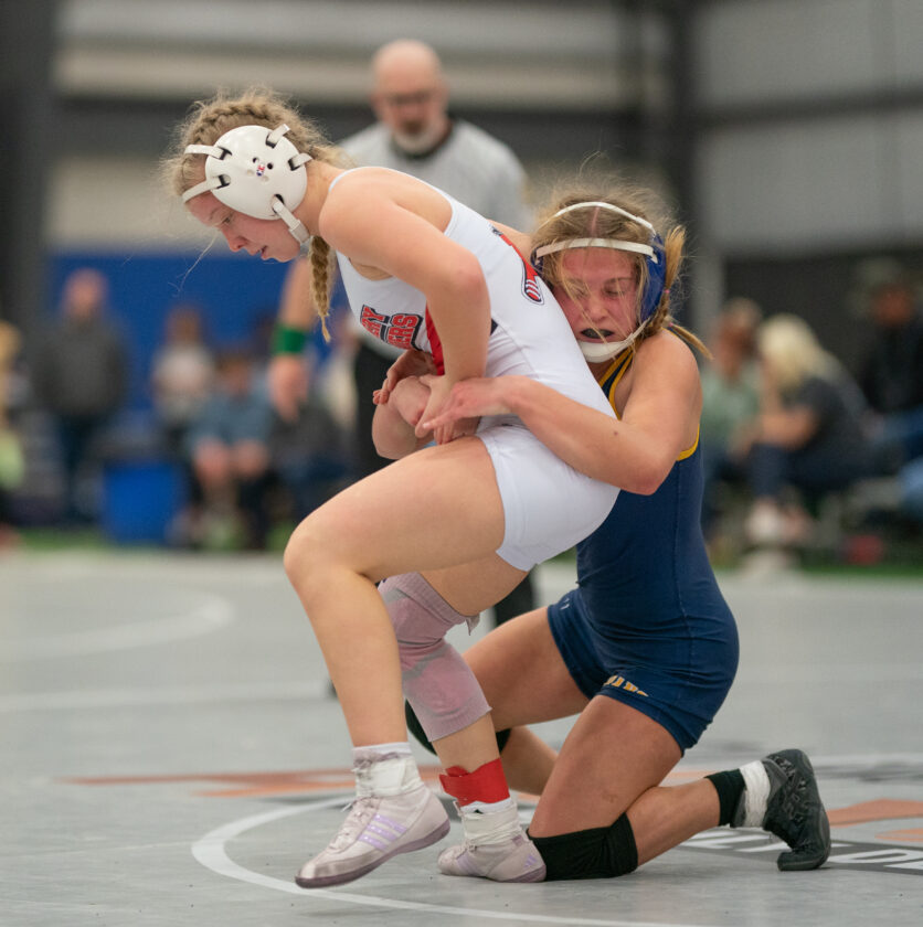 Houseknecht, a state medalist like Furman, had three round-robin pins as well, albeit not nearly as quickly as her teammate. Houseknecht pinned Camp Hill’s Vero Menanga in 41 seconds, Central Dauphin’s Nikita Muithuri in 1:28 and then a third-period fall over Upper Perkiomen’s Brianna Godshall in 4:37 to advance to the gold bracket championships. In the semifinals, Houseknecht outworked Williamson’s Maddison Fay and led by 10 points before securing a fall in 2:58 and followed with a 14-6 lead in the third period which resulted in a 5:18 fall for the title.