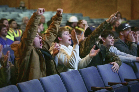- RALPH WILSON/Sun-Gazette Correspondent Penn College students cheer as Kaden Ware wrestles York’s Jacob Grzybek at 141 during a college men’s wrestling dual meet at the Community Arts Center on Friday. York won 24-21.