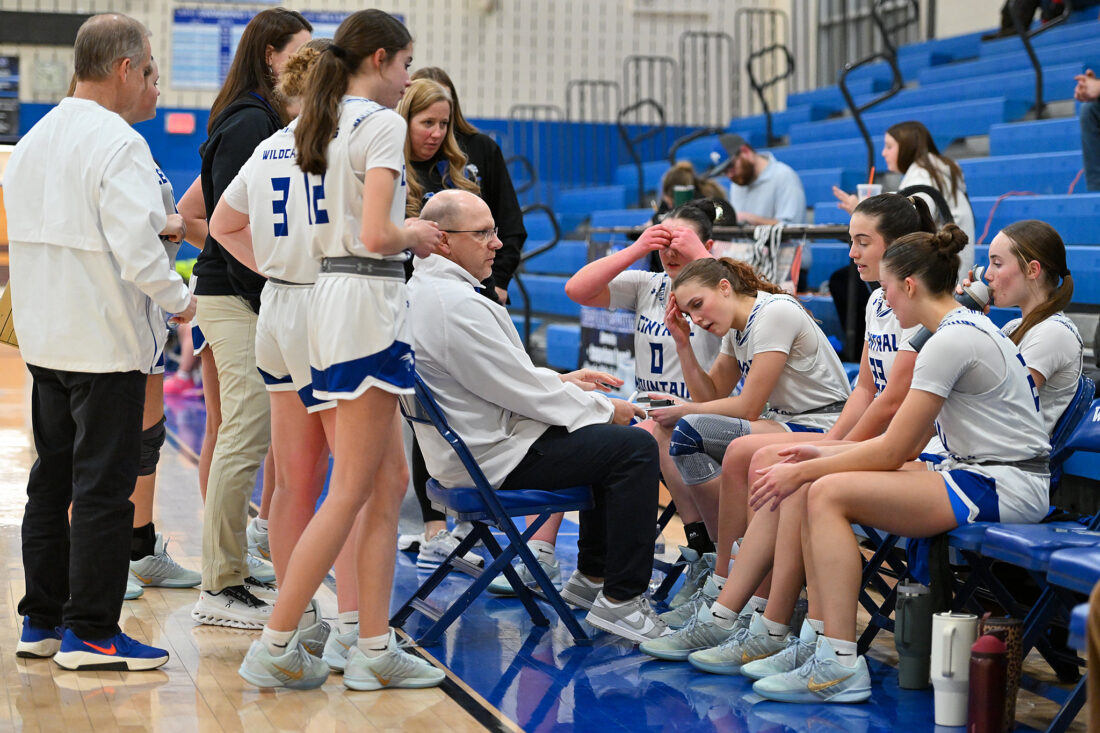 - TIM WEIGHT/Special to the Sun-Gazette Central Mountain head coach Scott Baker talks to his team during a timeout during a girls basketball game against Midd-West on Wednesday, Jan. 28, 2026, at Central Mountain. The Wildcats won 52-32.