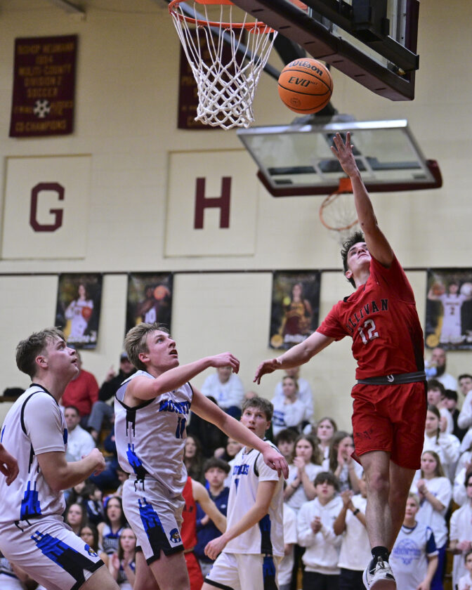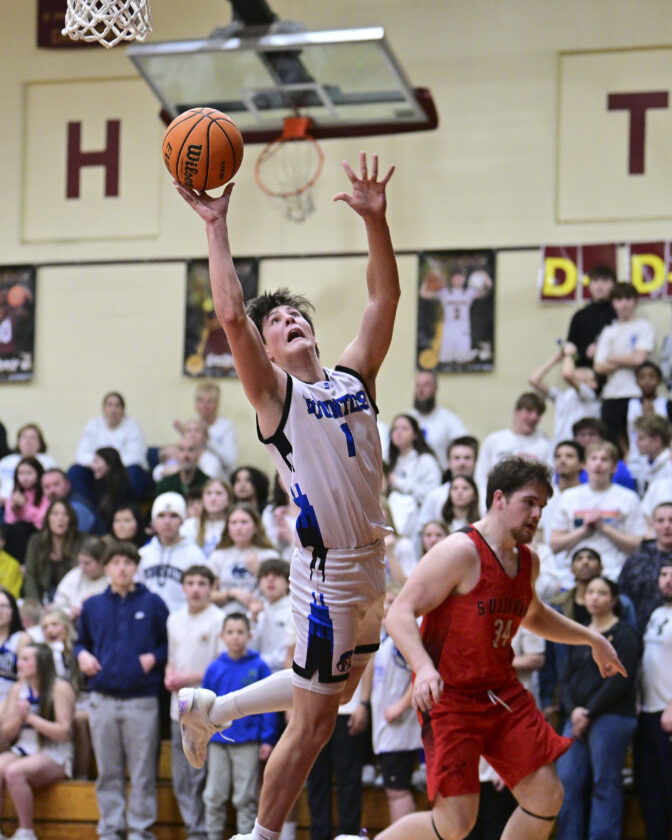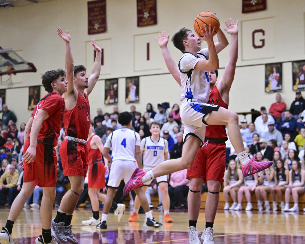 The lead grew to 33-22 by halftime as Walter scored seven of his 10 points. From there, the game resembled a yo-yo with Sullivan constantly chopping into the lead but South answering each time. Sullivan’s final push came in the fourth when King went into overdrive and hit a difficult leaner to make it, 53-50 with 1 minute, 18 seconds remaining. Butler hit a free throw, then made one of the game’s biggest plays, intercepting a pass which seemed destined to find Cayden Smithkors for a layup.