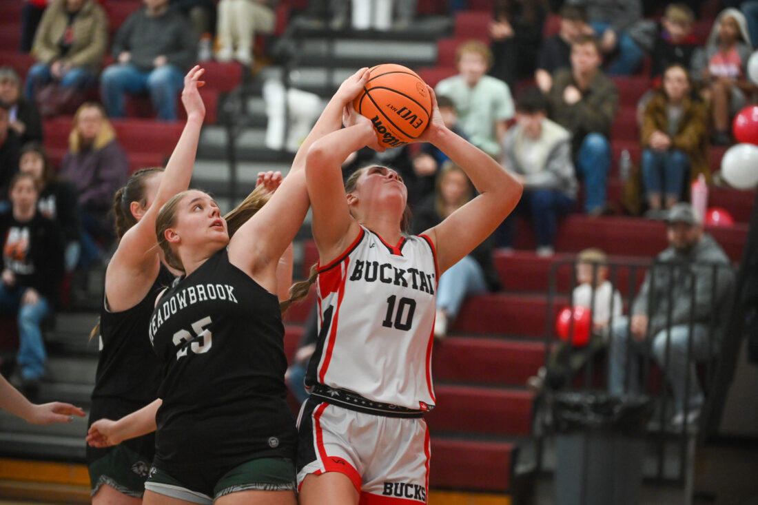 That became the theme of the game for the rest of the evening. Bucktail’s Arionna Winkelman scored on two straight possessions for the Bucks, but Meadowbrook started to snipe threes at the other end. A pair of long balls by Fasnacht and one each from Kaylee Ward and Lauren Dugan had the visitors up 23-16 at the break.