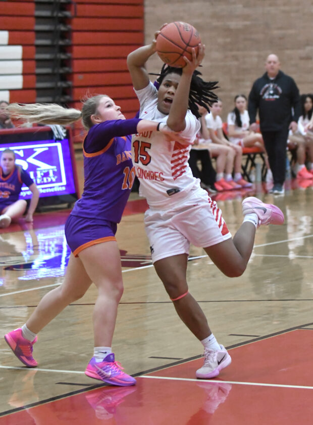 - MARK NANCE/Sun-Gazette Correspondent Williamsport’s Laylah Martin (15) shoots from the paint in the second quarter.